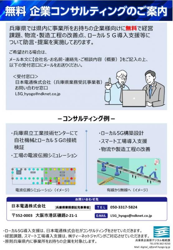 なお、企業コンサルティングは、原則兵庫県内に事業所がある企業を対象とします。