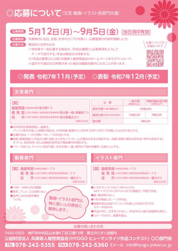 詳細な応募要領については、兵庫県人権啓発協会ホームページ(外部サイトへリンク)(別ウィンドウで開きます)をご覧ください。