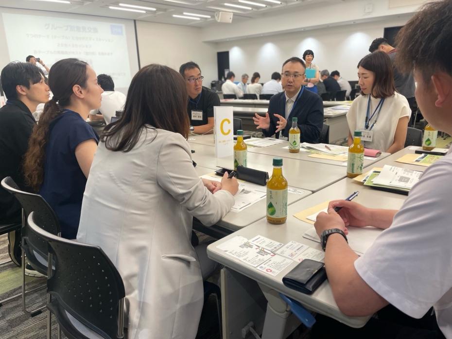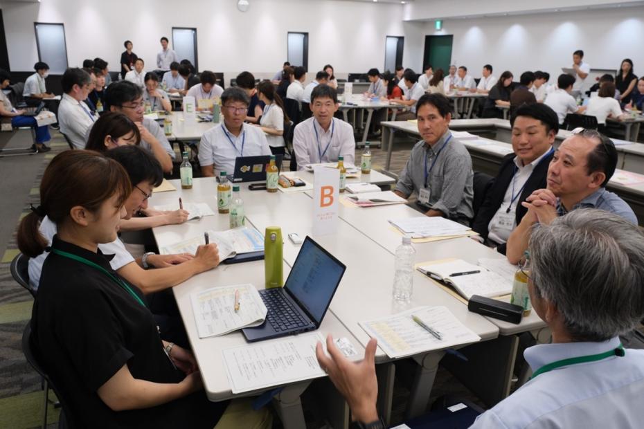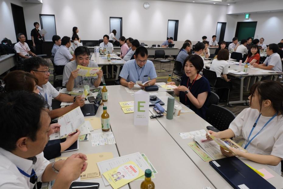 今回は「朝」という時間をテーブルごとに、朝ごはん、運動、地域活動など、さまざまなテーマで設定。せっかく多様な企業の方にお集まりいただいたので枠を飛び越えたセッションが生まれるよう、時間を区切り各テーマに応じた事業の県担当者のテーブルを移動していただきながら進行しました。