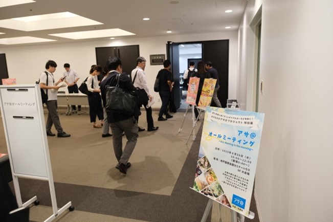 3年が経つ今、改めて「朝」という切り口でなにができるかを話し合う機会を持ちたいと、食品メーカー、製薬、サービス、マスコミなどさまざまな企業と兵庫県各種の事業の担当者が集まり、意見交換をする「アサ@オールミーティング」を開催。29社から42名が参加し、これからの活動について話し合いました。(2025年8月28日)