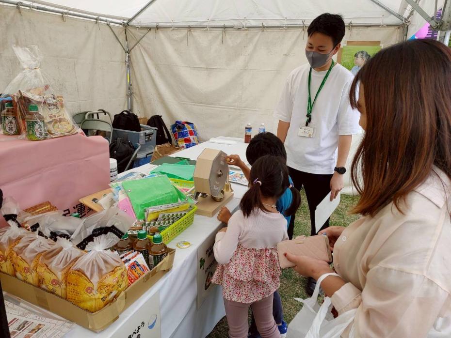 朝ごはん(ごはん食)の大切さを伝えるブースでは、朝ごはんに関するアンケートにお答えいただいた方にガラポン抽選会を実施しました。