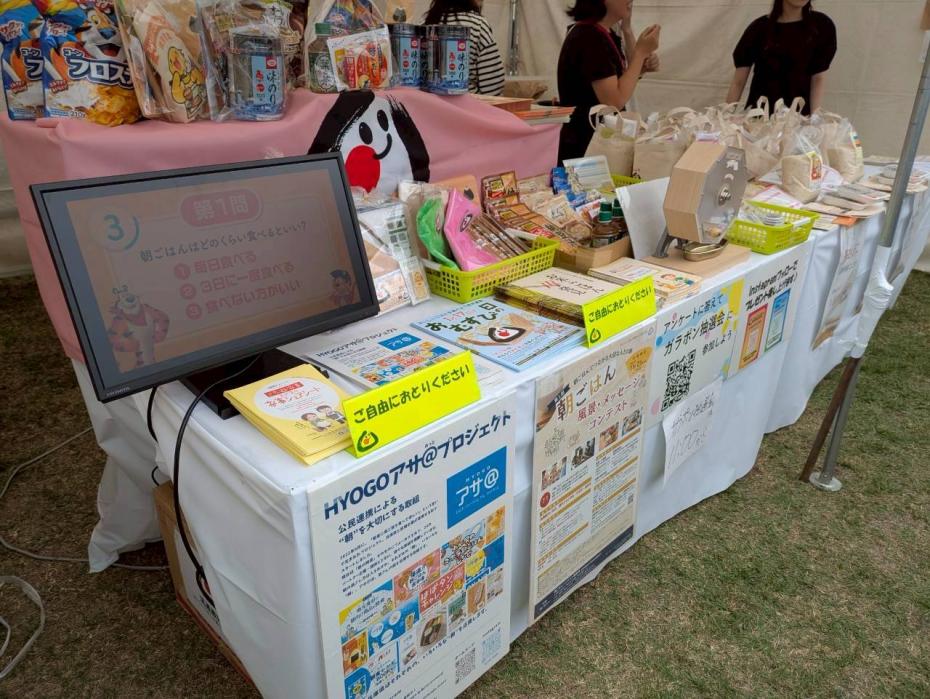 ご参加いただいた方には、オリジナルグッズのほか、HYOGOアサ@プロジェクトメインパートナー企業にも協力いただき、朝にぴったりな食品や、ごはんに合う食品を景品としてプレゼントしました。また、日本ケロッグ合同会社様に協力を頂き、食育動画を放映しました。