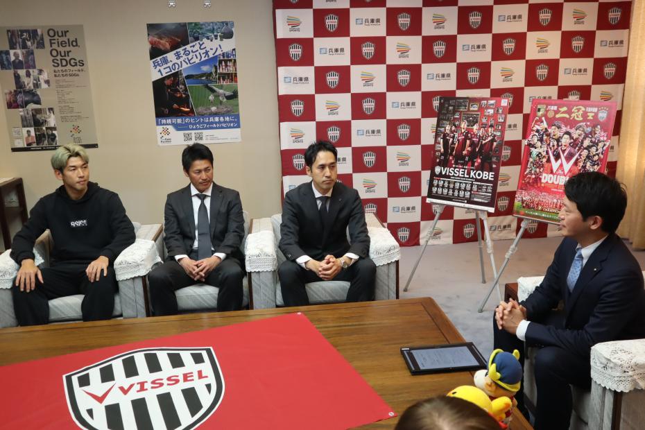 2025明治安田生命J1リーグの開幕を来週に控え、ヴィッセル神戸の千布社長、吉田監督、大迫選手が齋藤知事を表敬訪問。3連覇に向けた新シーズンでのクラブの目標などを伺いました。