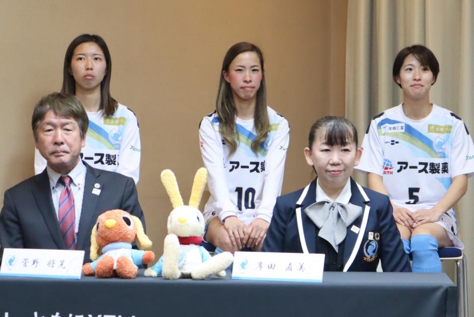 締結式では、ASハリマアルビオンの岸田社長が「デュアルキャリアというクラブの在り方が、やがて大きな地域の人財産となり、地元に愛される自慢のチームになるよう努力していきたい」と述べ、菅野監督は「地域に支えられるクラブとして、フラッグシップとなって男女問わずスポーツが盛んになるようにしたい」と今後の目標を語りました。