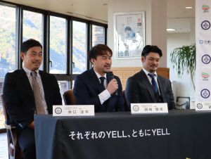 岡代表理事は「FC BASARA HYOGOは、兵庫県代表という強い想いでJFL昇格を目指しこの1年戦ってきたが、残念ながら昇格はできなかった。来年以降も引き続きJFL昇格を目指して頑張っていきたい」と意欲を語りました。岡崎理事は「自分がドイツで挑戦する姿を兵庫県の子どもたちに示し、兵庫県とドイツの子どもたちが国際的な交流をできるようにしたい」と熱い想いを語りました。井口理事は「“バサラビレッジグリーン”がひょうごフィールドパビリオンに認定され、スポーツだけでなく子どもたちの学びと気づきの場になったことが一番印象に残っている」と振り返りました。