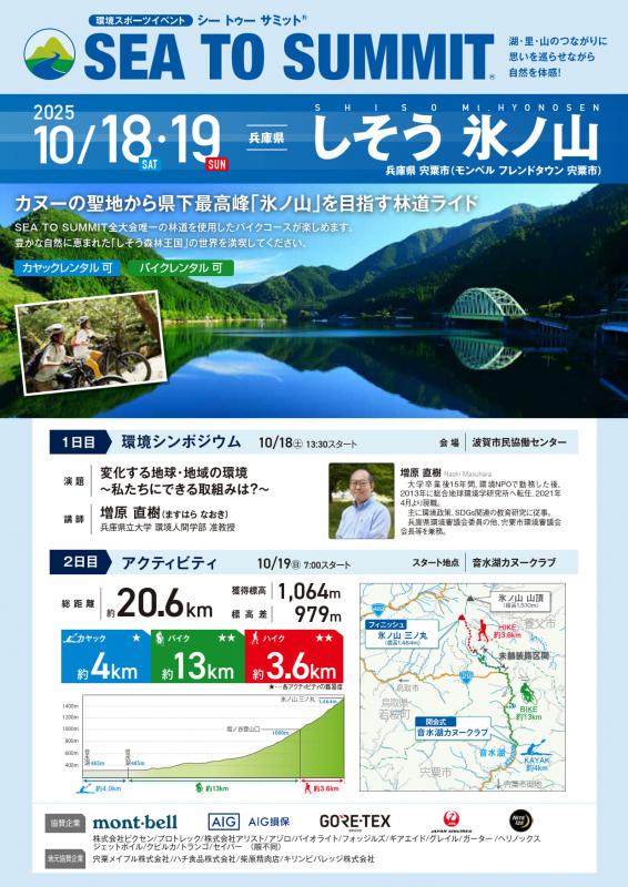 豊かな森に囲まれた音水湖でのカヤック、林道を使用したバイク、県内最高峰の氷ノ山へのハイクと、総距離約20.6kmに3つのアクティビティが詰まったイベントです。全国11箇所で開催され、唯一林道を使用したバイクコースが楽しめます。