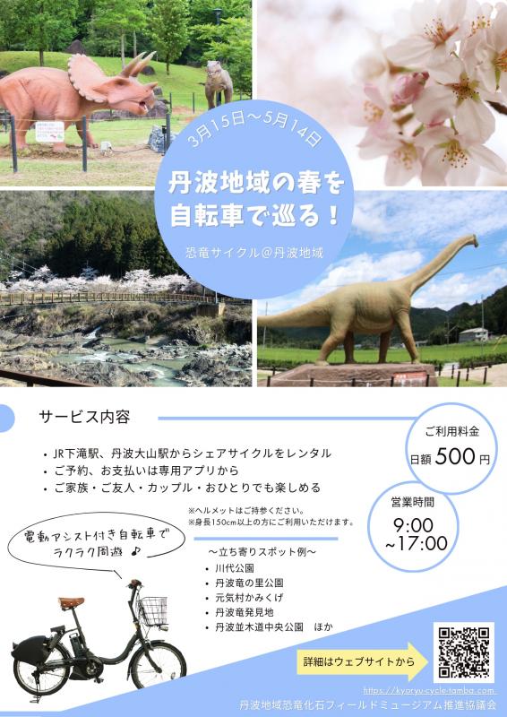 丹波地域の恐竜ゆかりの地を春の季節を感じながら電動アシスト付き自転車で巡るレンタサイクル事業です。