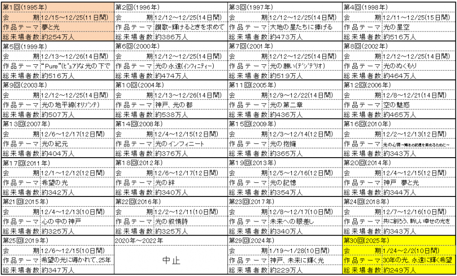 神戸ルミナリエは2025年1月、「30年の光、永遠に輝く希望」をテーマに開催しました。