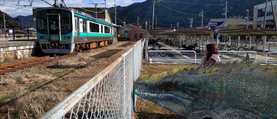 加古川線沿線を背景にした恐竜の写真を「#加古川線と恐竜」とともに投稿してください。
