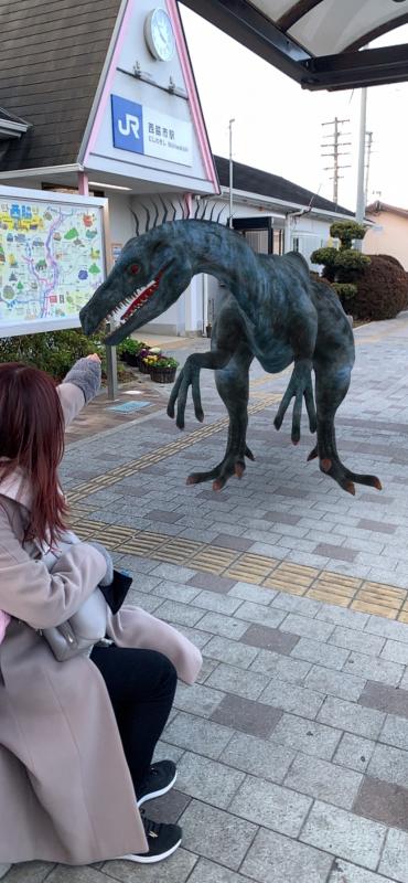 西脇市駅~谷川駅間の沿線施設6箇所に、恐竜AR写真スポットが設定されています。