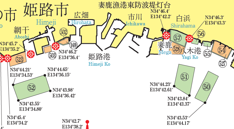 | 地区 | 高砂市地先 | 東播磨港地先 | 二見町地先 | 魚住町~林崎地先 | 鹿ノ瀬 |