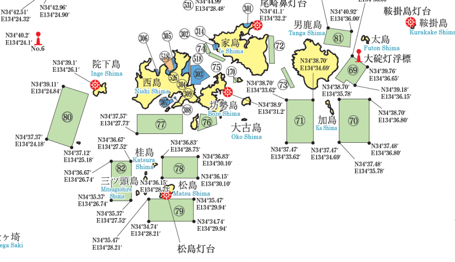 【播磨灘、姫路市家島諸島周辺の漁場】