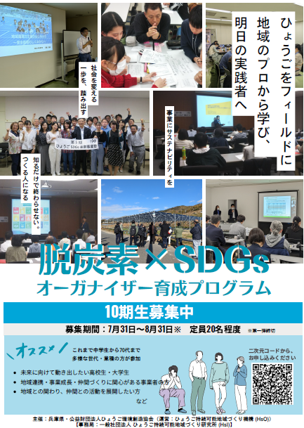 このたび、再生可能エネルギーの導入によるエネルギーの地産地消など、地域循環共生圏の創出に向け、事業づくりや地域づくりを率先して進める人材の育成プログラムを下記のとおり実施します。ご関心をお持ちの方は、是非ご応募ください。