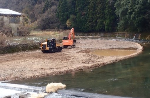 人家が密集する地区や、放置すれば更なる土砂堆積が見込まれる河川合流点付近等で堆積土砂の撤去等を推進します。(担当課:河川砂防課)