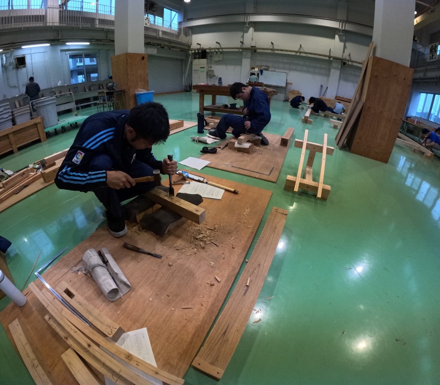 木造建築を中心とした各種建築物の施工管理技術・大工技能、CAD等による建築図面の作図技法を習得