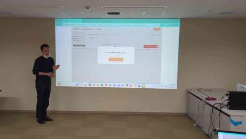 会議室のプロジェクターを使い、スクリーンにシステム画面が映し出された。その横に大谷さんが立つ。