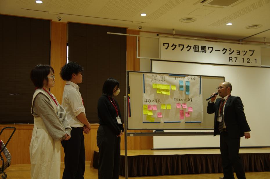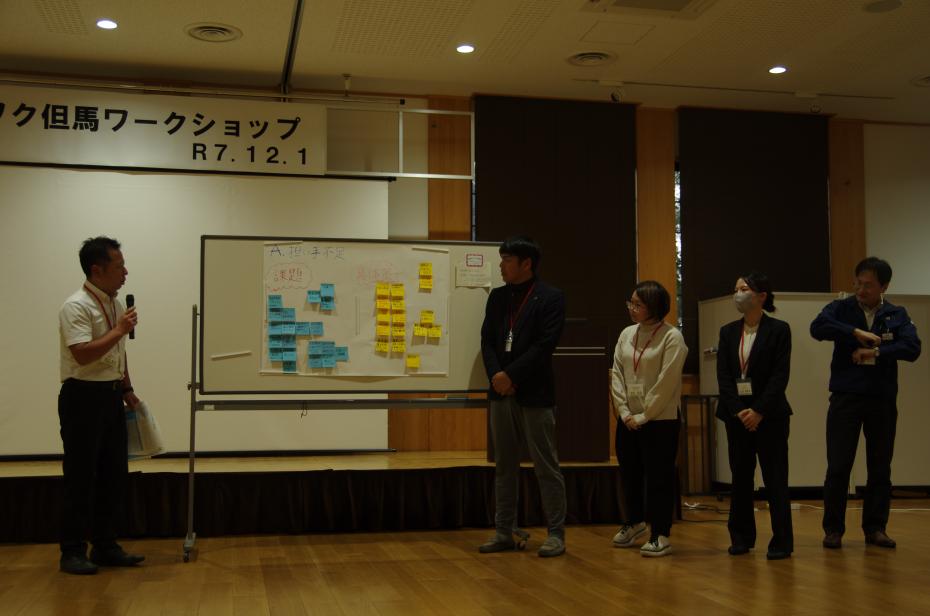 但馬地域における観光業の持続可能性に向け、交通手段の不足や後継者問題などの課題をテーマに観光業に携わる参加者らが意見交換を行いました。特に、二次交通の確保や宿泊・体験のセット販売、地域人材の活用など、課題解決に向けた具体策について議論しました。