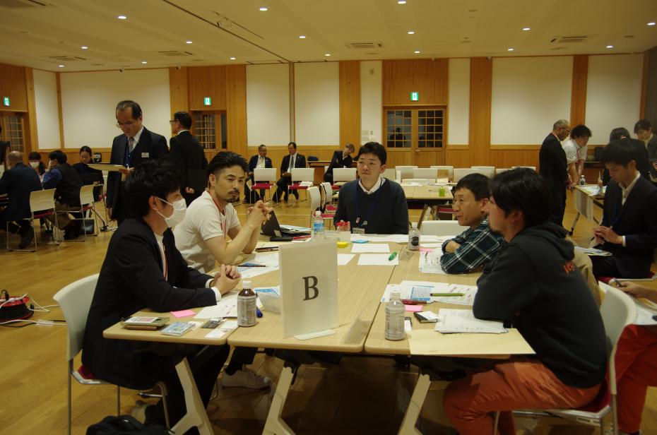 但馬地域における担い手を次世代に繋げるため、仕事へのイメージ・働き方・若者の定住等の課題をテーマに一次産業、二次産業に携わる参加者らが意見交換を行いました。