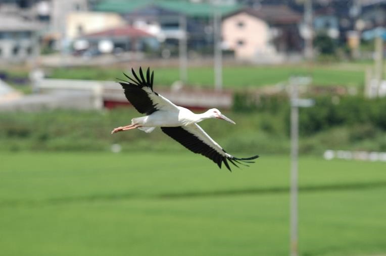 現在は、大陸から日本各地へ1、2羽の飛来があり、平成14年8月、平成18年5月には兵庫県立コウノトリの郷公園に各1羽が飛来。その後、定着・繁殖した。