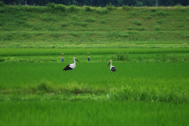 コウノトリ育む農法による農薬の削減・冬期湛水・中干し延期等により、イトミミズ類・カエル・トンボ類等は慣行栽培に比べ増えており、餌場としての機能は高まっている。作付面積は年々拡大しており、今後も拡大に向けて取り組みを推進する。