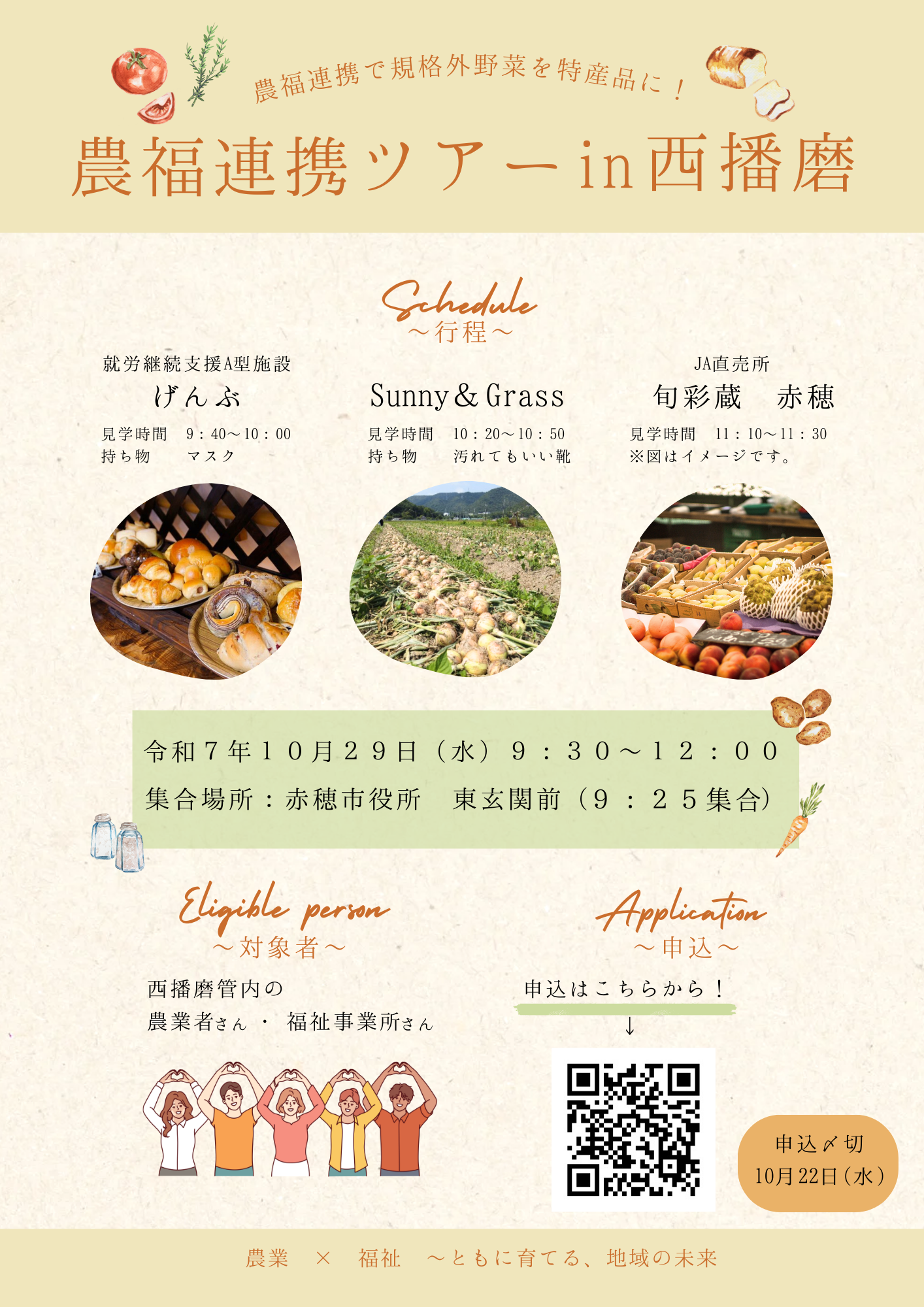西播磨管内の農業者・福祉事業所の皆様、ぜひお気軽にお申し込みください!